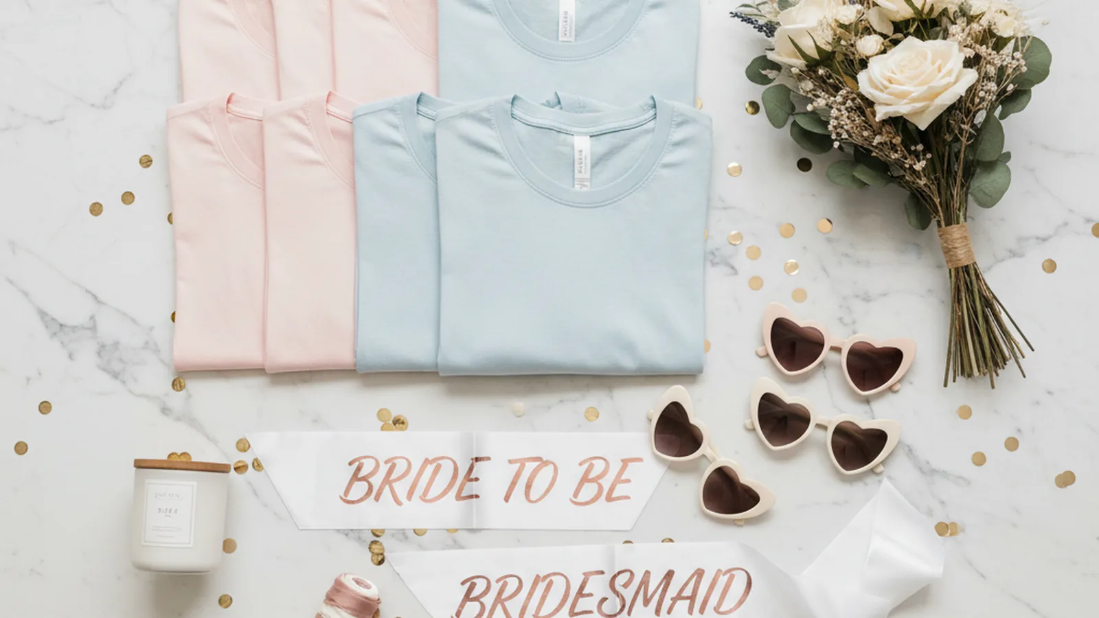 Le goodie numéro un. Coton 180 g/m² minimum, flex ou sérigraphie pour la durabilité. Un modèle pour la mariée (couleur distincte), un modèle identique pour les invitées. Détail complet dans notre guide T-shirt personnalisé EVJF.