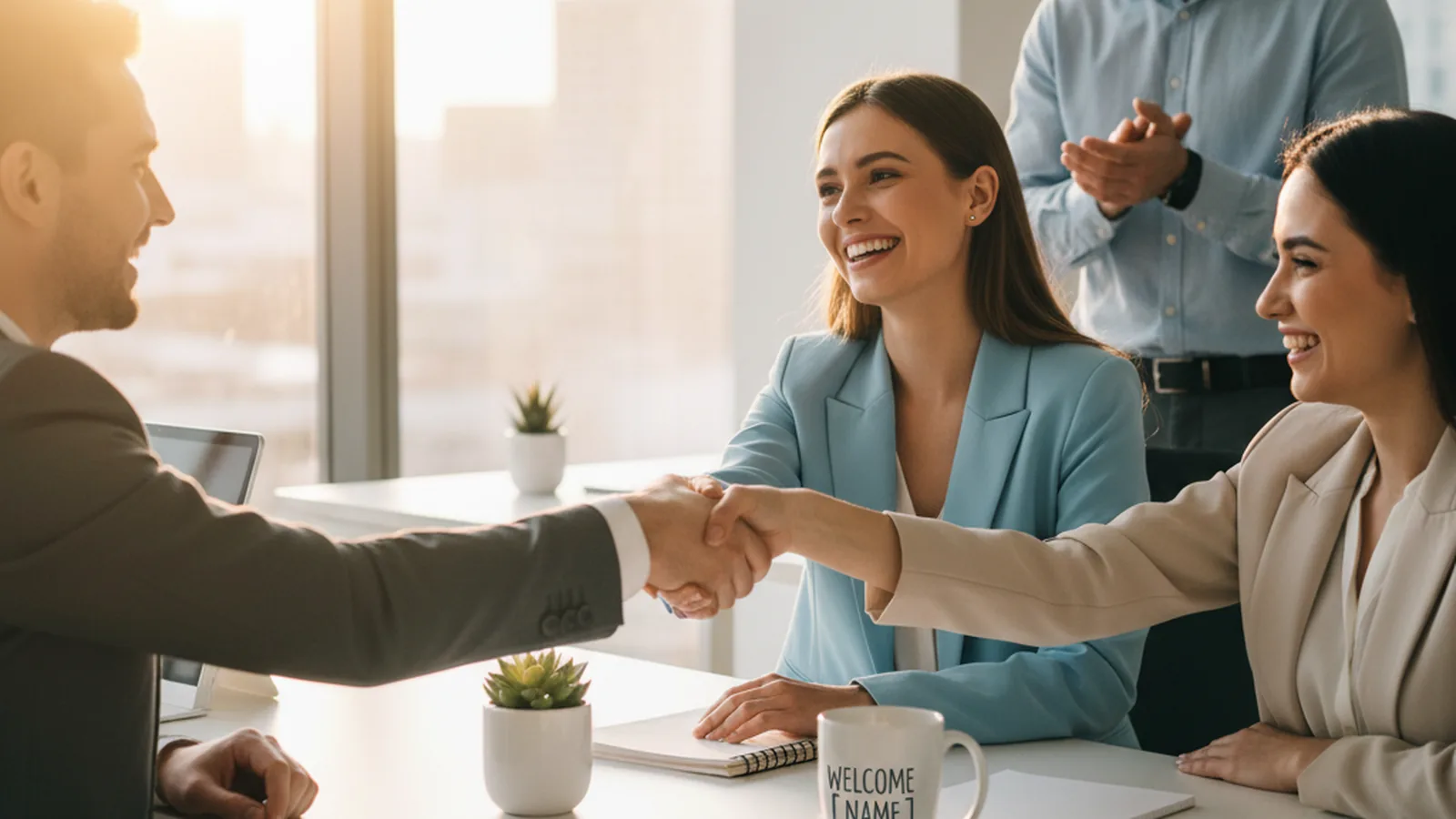 Ambiance détendue, viennoiseries, musique légère. Un membre de la direction passe, serre les mains, échange sans discours. Objectif : faire retomber le stress et poser un cadre chaleureux. Évitez la salle de réunion aseptisée, préférez un espace vivant.