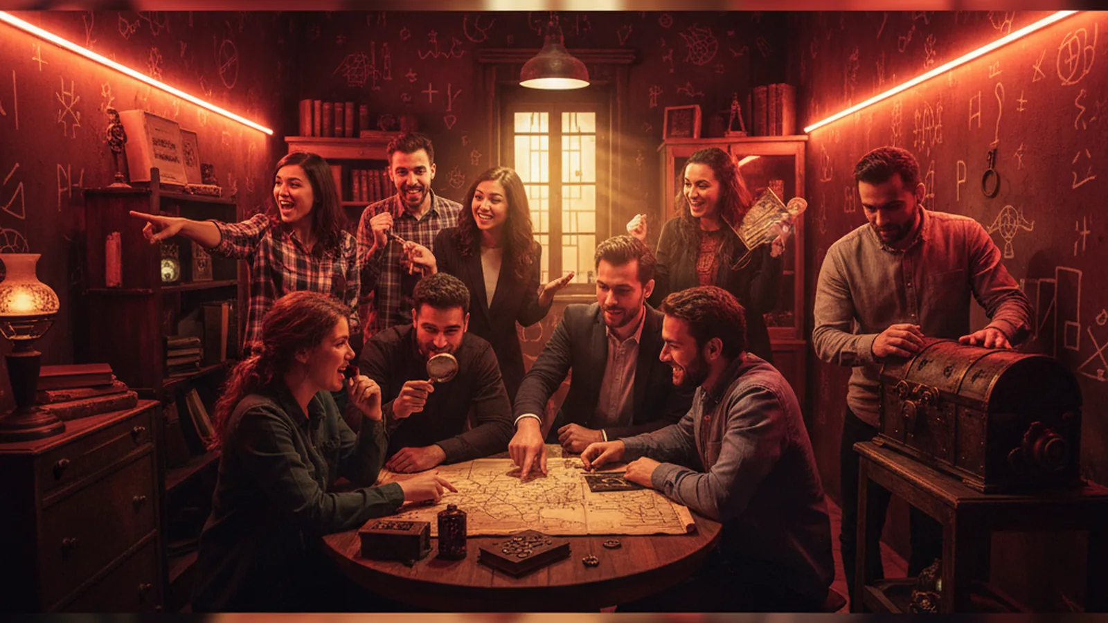 Vos collaborateurs se réveillent « après » un événement mystérieux dont ils n'ont aucun souvenir. Équipés d'une tablette tactile, ils doivent reconstituer le fil des événements à l'aide d'indices disséminés. Suspense, logique, coopération, fun. Format hybride qui capture l'esprit murder party sans sa complexité de production théâtrale.